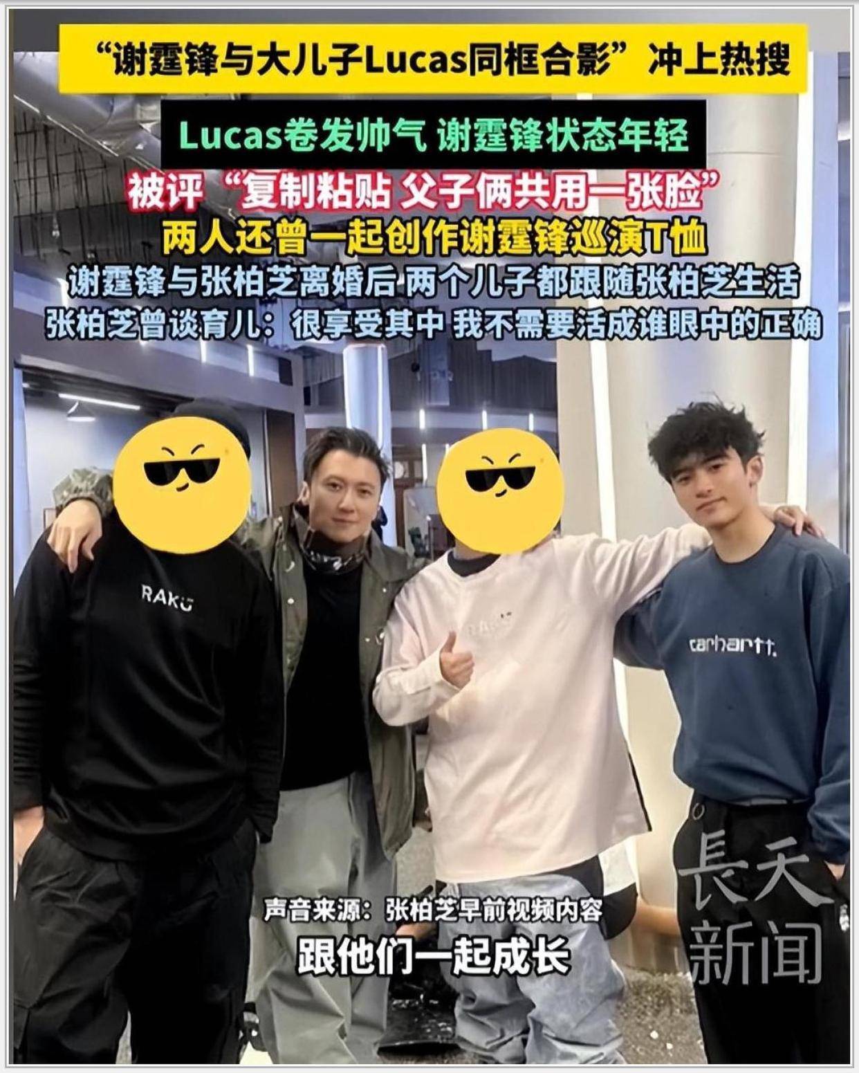再看三个儿子数据:18岁Lucas决定去澳洲读大学,身高颜值越来越像谢霆锋;15岁Quintus已经比哥哥高,侧脸神似妈妈张柏芝;7岁Marcus圆脸长腿 网友预测能长。